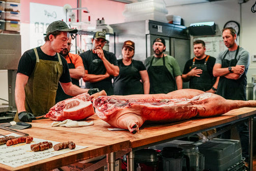 Grab your knives and head to the block, chefs. During this two hour intensive, our bad ass butchers will be teaching you how to properly breakdown a whole hog. From cutting, de-boning, and slicing, this class offers you the chance for some hands-on butchery experience, while hanging out with our very cool team and learning a bit more about what we do here at The Wise Ox. Expect to leave with 8+ lbs of fresh-cut pork, sausages, and more.